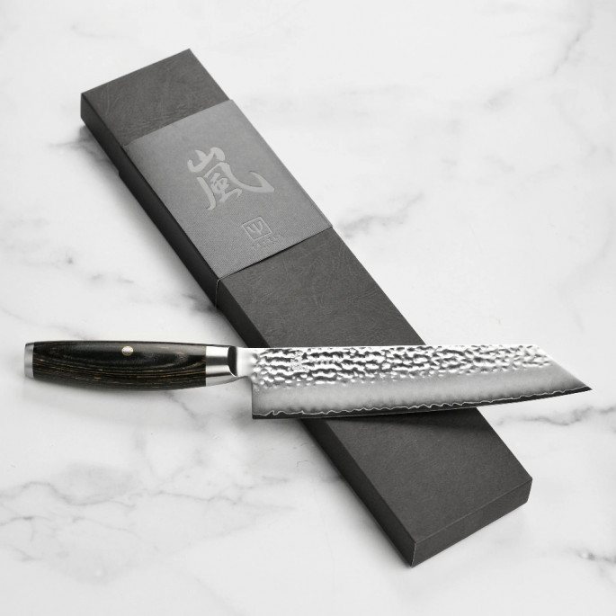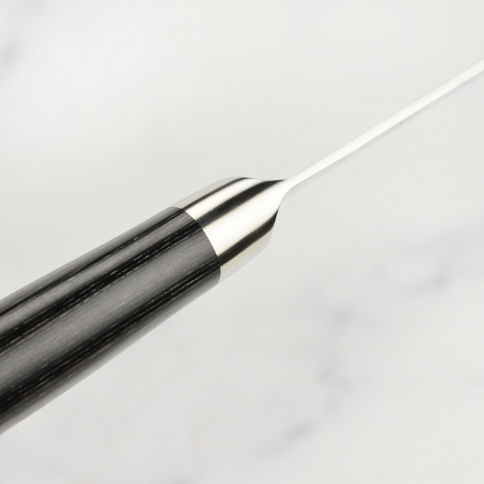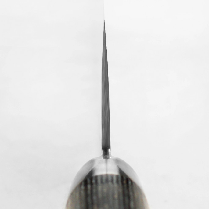 В основі тришарового леза – японська порошкова сталь SG2, що має високу твердість – 63 HRC за шкалою Роквела та надвисоку ріжучу здатність: ніж триматиме екстремальну гостроту довгий період до заточування. Кут заточування становить 12,5⁰ з кожного боку.