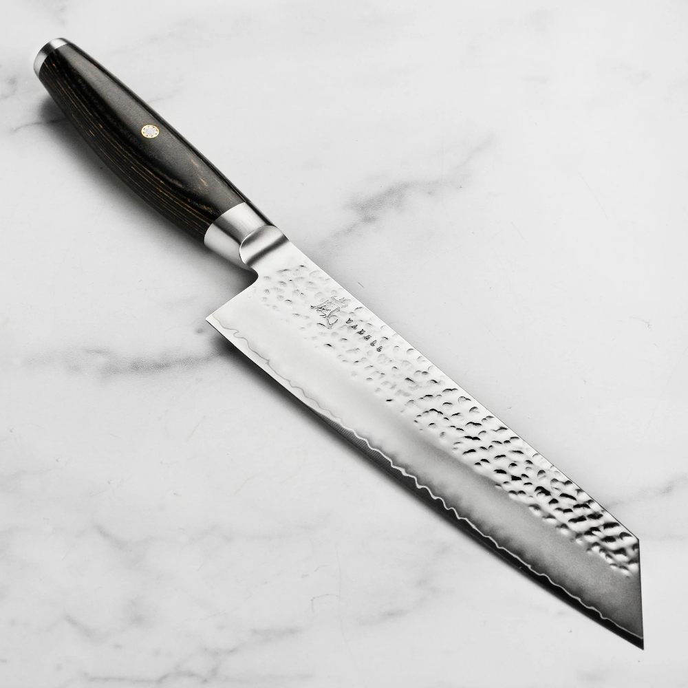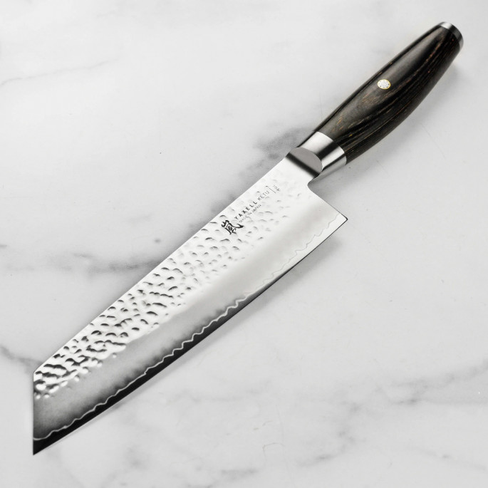Серія японських ножів KETU – новинка Yaxell 2022 –в перекладі з японської мови «Простий та бездоганний». KETU – більш доступна за ціною альтернатива дорогим серіям Gou та Super Gou. Має в основі клинка таку саму марку сталі, та яскраво виражений дизайн. Поступається кількістю шарів дамаску, але поряд з цим ніж має пристойну функціональність.
