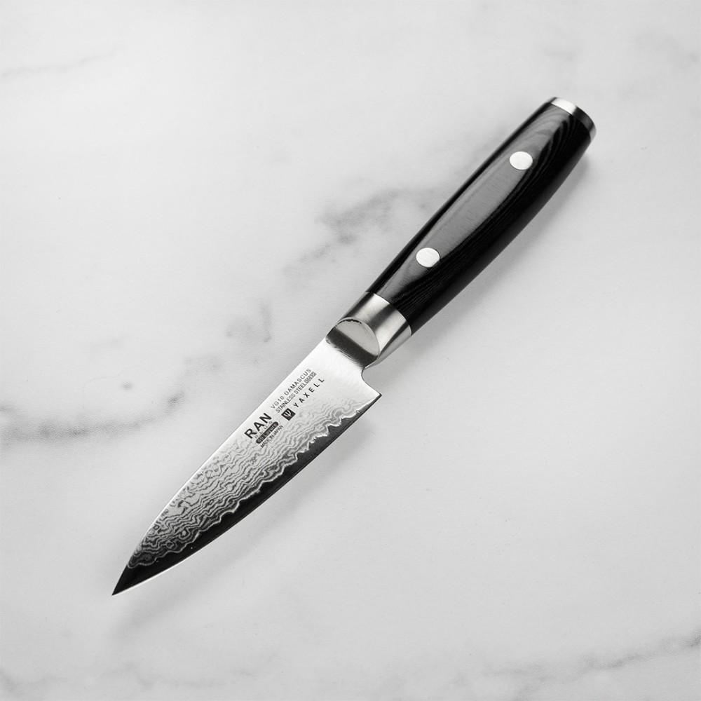 Yaxell RAN PLUS – популярна серія японських ножів із дамаської сталі. Їхній дизайн одночасно класичний і сучасний, з акцентом на неймовірно красивому візерунку. Серія Ran прославила ножі Яксель на весь світ. Кухонні ножі Yaxell RAN були неодноразово відзначені нагородами на міжнародних конкурсах і тестах якості.