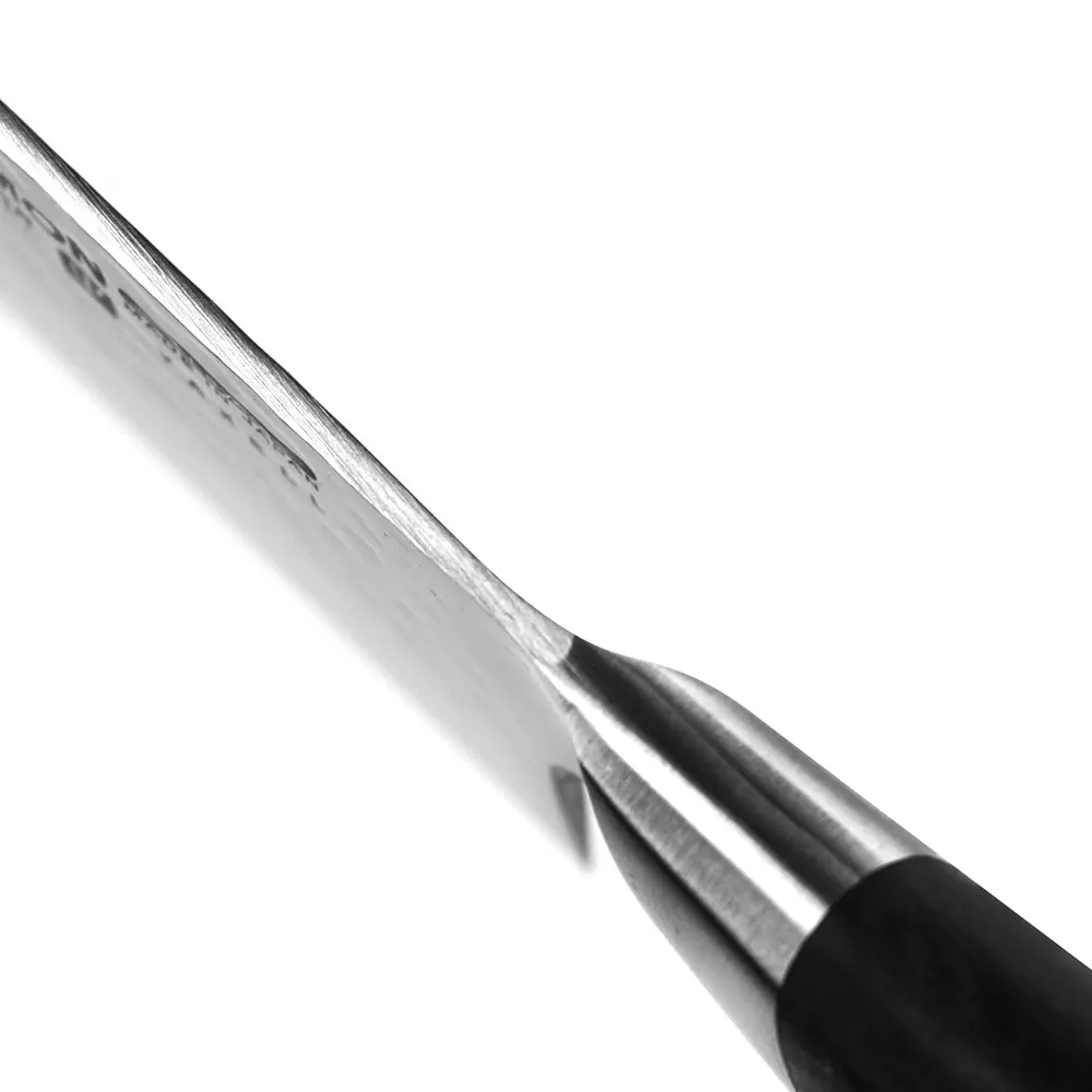 Ніж має дуже гостру ріжучу кромку, симетричний кут заточки складає 15°. Твердість леза – 61 одиниць (HRC) за шкалою Роквелла гарантує тривале збереження ріжучої здатності поварського ножа.
