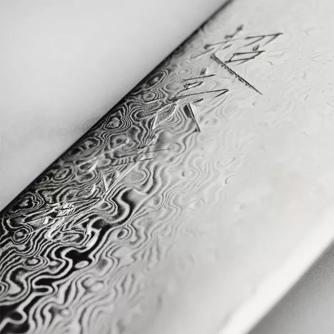 Японський ніж для чистки овочів Super GOU Ypsilon з лезом із дамаської сталі 12 см підходить для щоденного використання на професійній або домашній кухні, оскільки витримує будь-яке робоче навантаження. В основі ножа високоякісна японська порошкова сталь SG2, покрита захисними обкладками із 190 шарів нержавіючої сталі з ефектним дамаським візерунком на лезі.