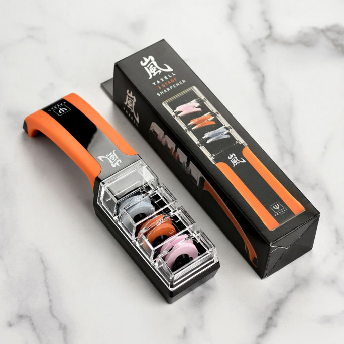 Не вірив, що це може так вплинути на ножі. Точило Yaxell настільки зручне, що навіть дружина вирішила сама гострити ножі! Чудово справляється і з шеф-ножами, і з маленькими.