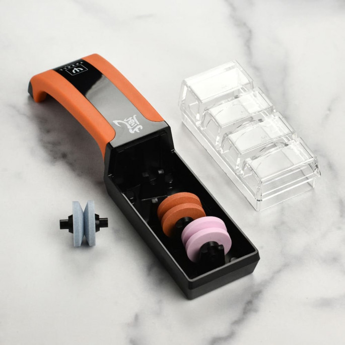 Точило Yaxell 37222 справжня знахідка для мене! Це справжня швидкість і простота в роботі. Заточив свої ножі за кілька хвилин і отримав ідеально гострі леза. Мені дуже сподобалася його компактність і зручність.