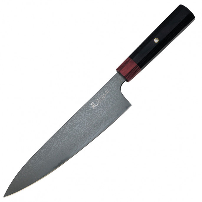 Преміальна восьмикутна чорно-червона ручка з Pakka Wood (композит дерева та смоли) прикрашена самурайським гербом, розроблена досвідченими дизайнерами Yaxell, забезпечує ідеальний баланс та оптимальний контроль.