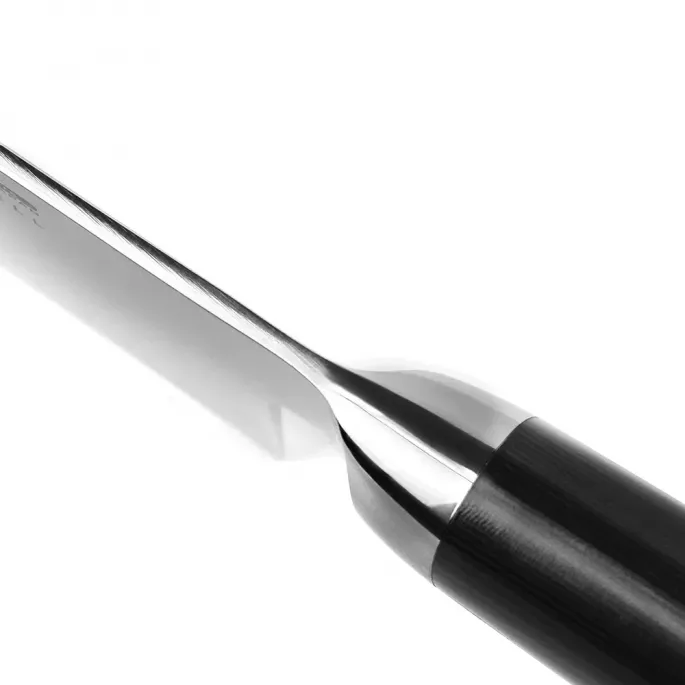 - дуже гостре лезо, симетрично заточене під кутом 15⁰. У комбінації з твердістю дає високу і довгу ріжучу здатність. Ніж довго буде зберігати гостроту, не потребує частої заточки;