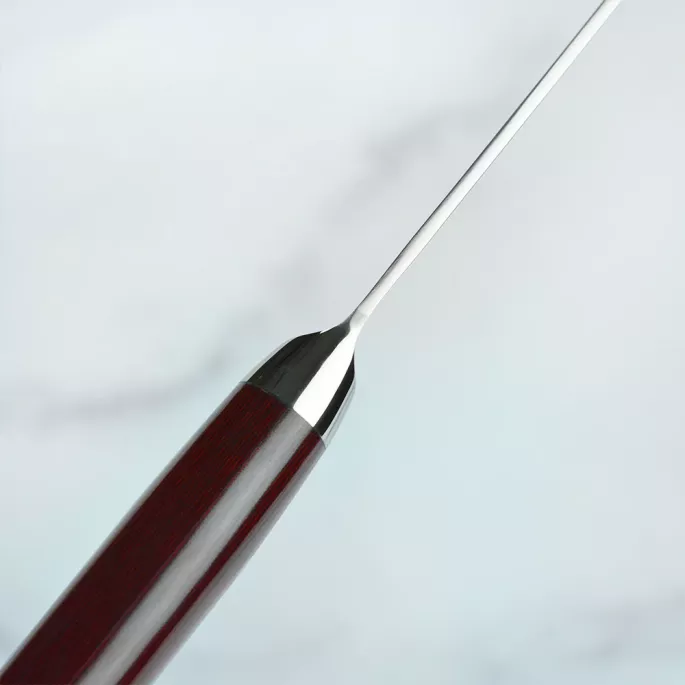 - больстер з нержавіючої сталі і металеве навершя надають додаткову естетику і створюють прекрасне балансування ножа. Кисть руки менше стомлюється;