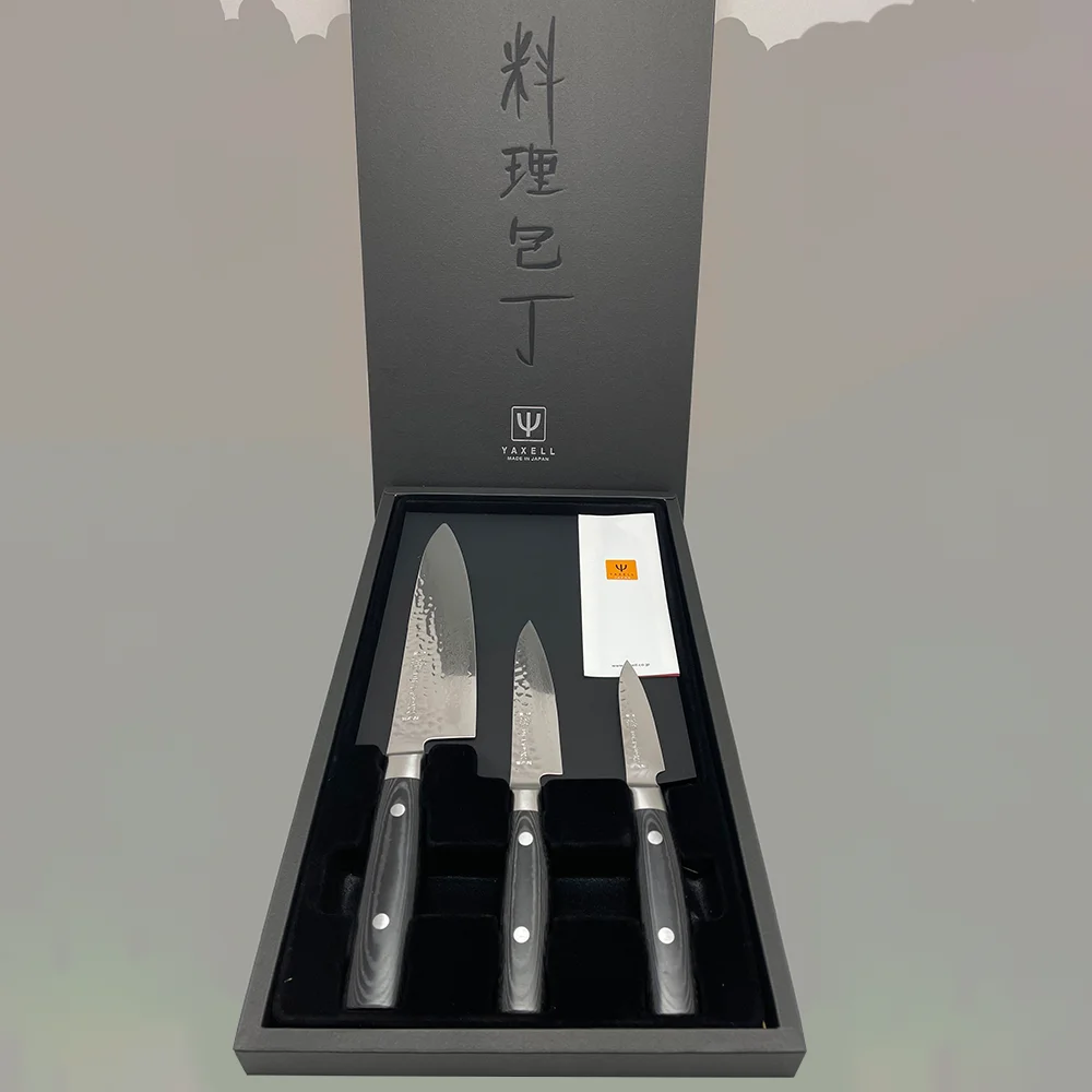 Набір ножів Яксель з дамаської сталі, серії ZEN складається з трьох предметів: