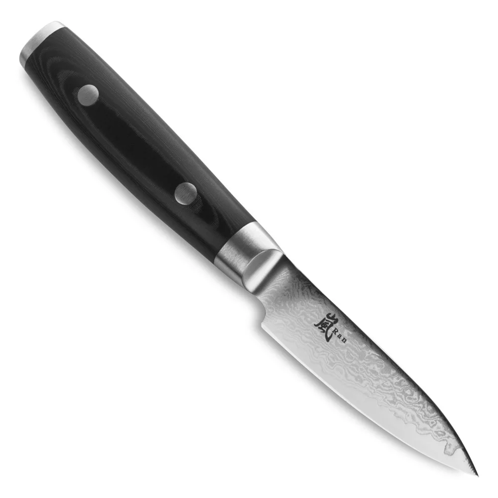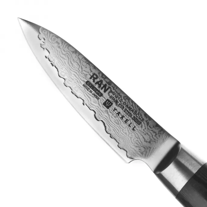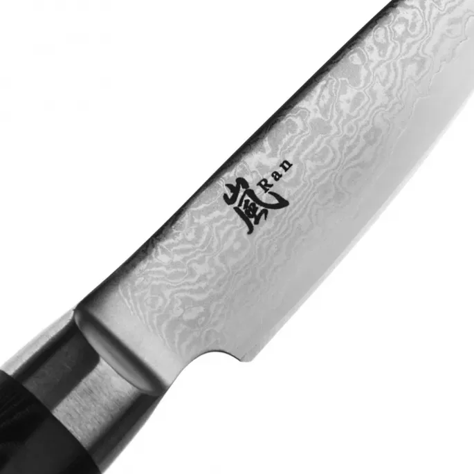 Японський ніж для овочів серії RAN з лезом із дамаської сталі 8 см підходить для щоденного використання на професійній або домашній кухні, оскільки витримує будь-яке робоче навантаження.