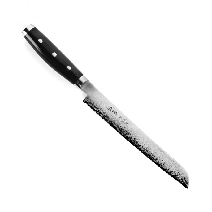 Японський ніж серії GOU з серрейторним лезом із дамаської сталі 23 см підходить для щоденного використання на професійній або домашній кухні, оскільки витримує будь-яке робоче навантаження. Використовується як ніж для хліба, ніж для торта, кондитерський ніж і т.п. Пилоподібна форма ріжучої кромки серрейторного ножа дозволяє делікатно розрізати м'якоть і скоринку хліба або виробів з тіста.