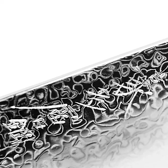 В основі леза високоякісна японська порошкова сталь SG2, покрита захисними обкладками із 100 шарів нержавіючої сталі з ефектним дамаським візерунком на лезі.