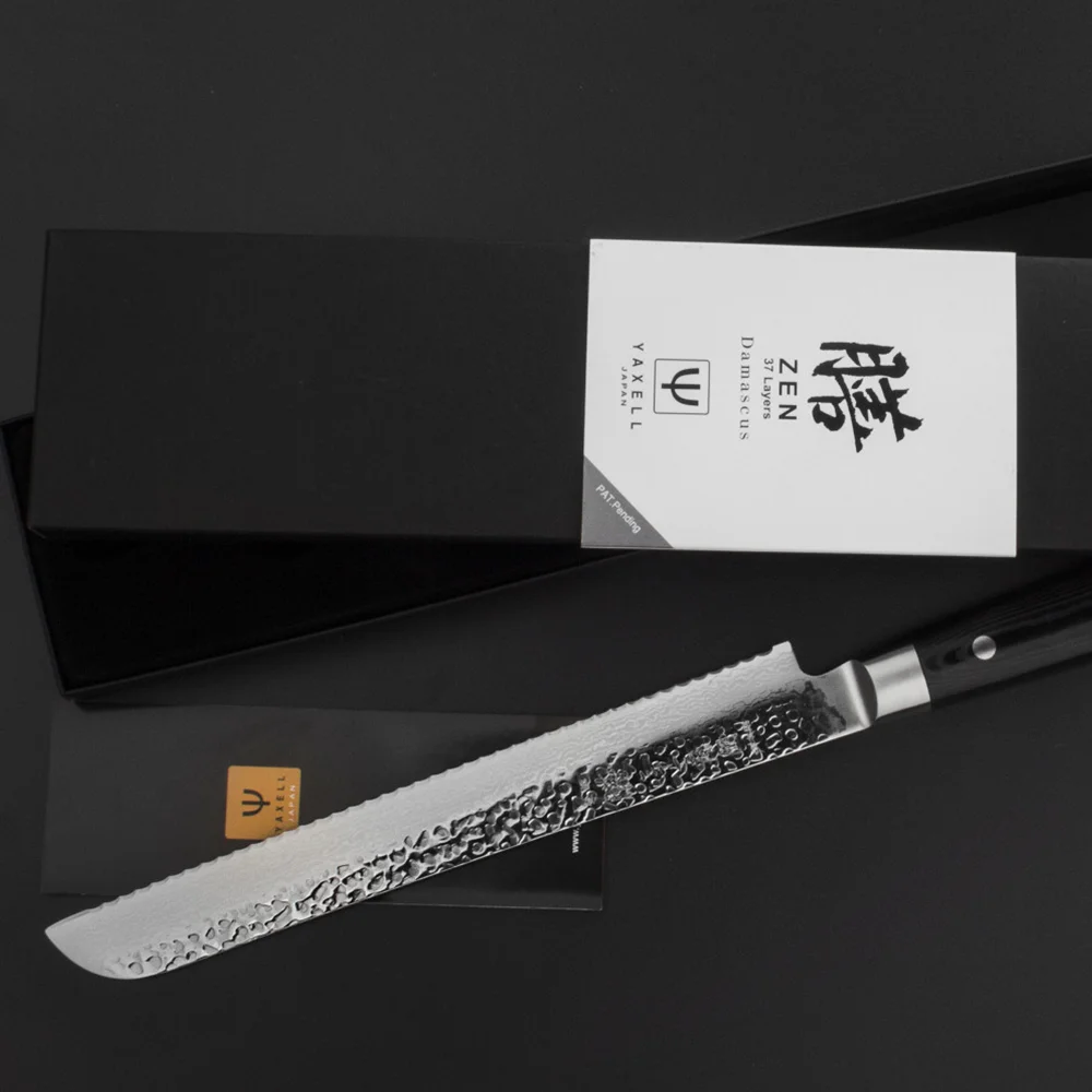 Японський ніж серії ZEN з серрейторним лезом із дамаської сталі 23 см підходить для щоденного використання на професійній або домашній кухні, оскільки витримує будь-яке робоче навантаження. Використовується як ніж для хліба, ніж для торта, кондитерський ніж і т.п. Пилоподібна форма ріжучої кромки серрейторного ножа дозволяє делікатно розрізати м'якоть і скоринку хліба або виробів з тіста.