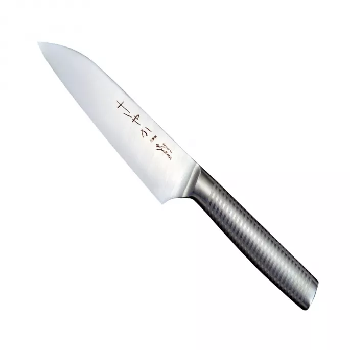 Японський ніж Сантоку серії SAYAKA з лезом із дамаської сталі 13 см підходить для щоденного використання на професійній або домашній кухні, оскільки витримує будь-яке робоче навантаження. Лезо Сантоку широке, з більш прямою ріжучою лінією. «Сантоку» в перекладі – «три хороші речі», що говорить про придатність ножа добре рубати, кришити та нарізати тонкими скибками або кубиками як м’ясо, рибу, так і овочі, сири та інші продукти.