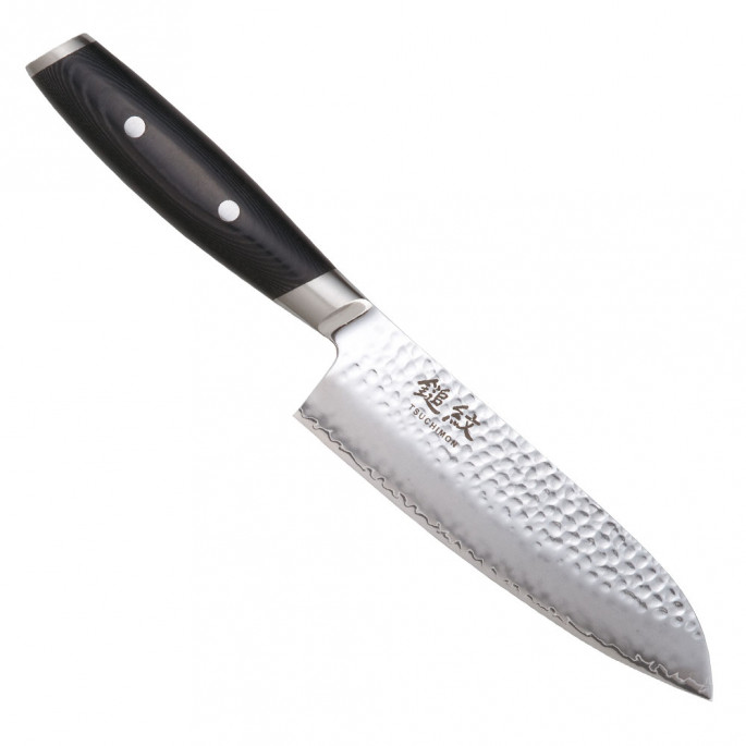 Японський ніж Сантоку серії TSUCHIMON з лезом 16,5 см з дамаської сталі підходить для щоденного використання на професійній або домашній кухні, оскільки витримує будь-яке робоче навантаження. Лезо Сантоку широке, з більш прямою ріжучою лінією. «Сантоку» в перекладі – «три хороші речі», що говорить про придатність ножа добре рубати, кришити та нарізати тонкими скибками або кубиками як м’ясо, рибу, так і овочі, сири та інші продукти.