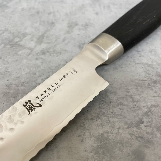 Yaxell TAISHI – достойная серия японских ножей из дамасской стали. Сочетает выразительный дизайн, высокие качественные характеристики и справедливую цену.