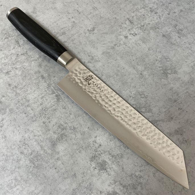 В основе ножа высококачественная 3-слойная нержавеющая сталь VG10 (кобальт, молибден, ванадий) с волнистым узором KATANA, который четко вырисовывается на лезвии.