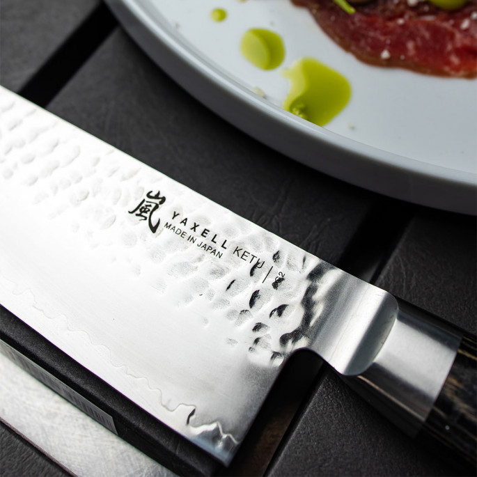 Серия японских ножей KETU – новинка Yaxell 2022 –в переводе с японского языка «Простой и безупречный». KETU – более доступная по цене альтернатива дорогим сериям Gou и Super Gou. Имеет в основе клинка такую же марку стали и ярко выраженный дизайн. Уступает количеством слоев дамаска, но несмотря на это нож имеет приличную функциональность.