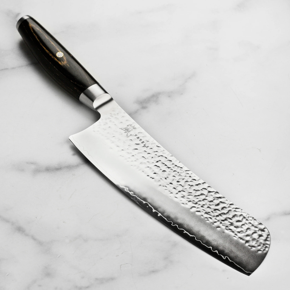 Поверхность лезвия покрыта оригинальным узором от следов молота.