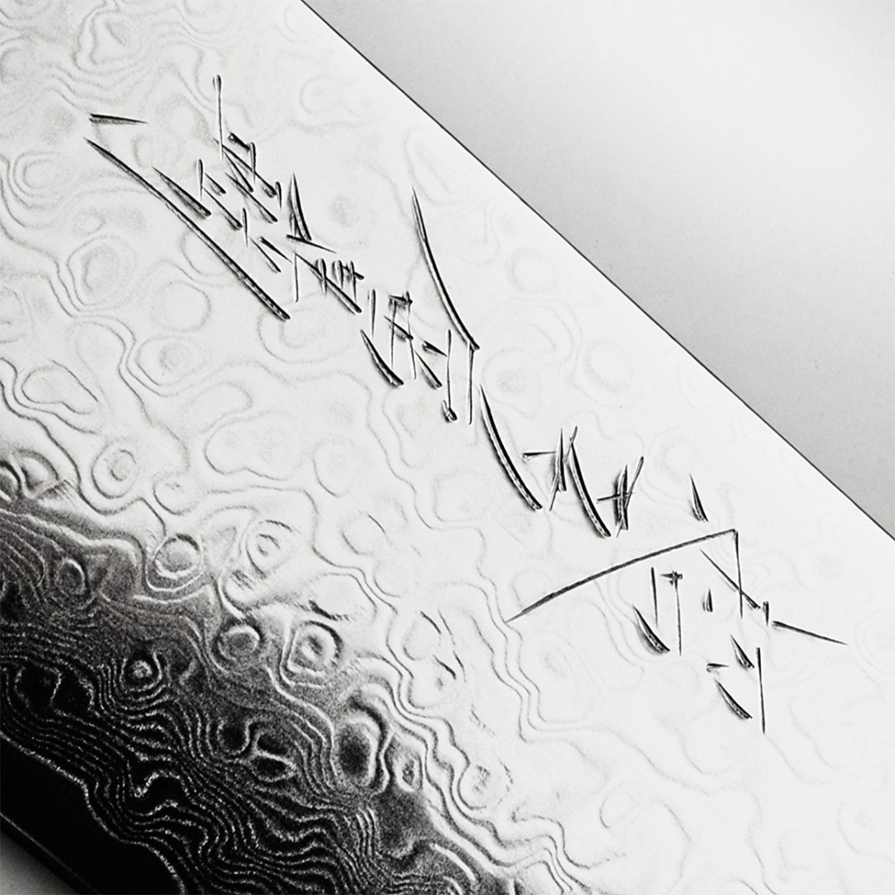 - премиальный дизайн ножа: красивый узор на лезвии, ручная гравировка надписи "Super GOU. Дух самурая" на лезвии и лого серии на рукояти;