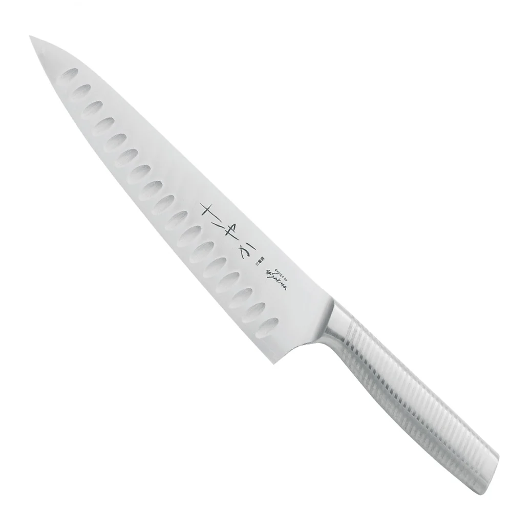 Японский шеф-нож серии SAYAKA с лезвием 20 см из дамасской стали подходит для ежедневного использования на профессиональной или домашней кухне, поскольку выдерживает любую рабочую нагрузку.