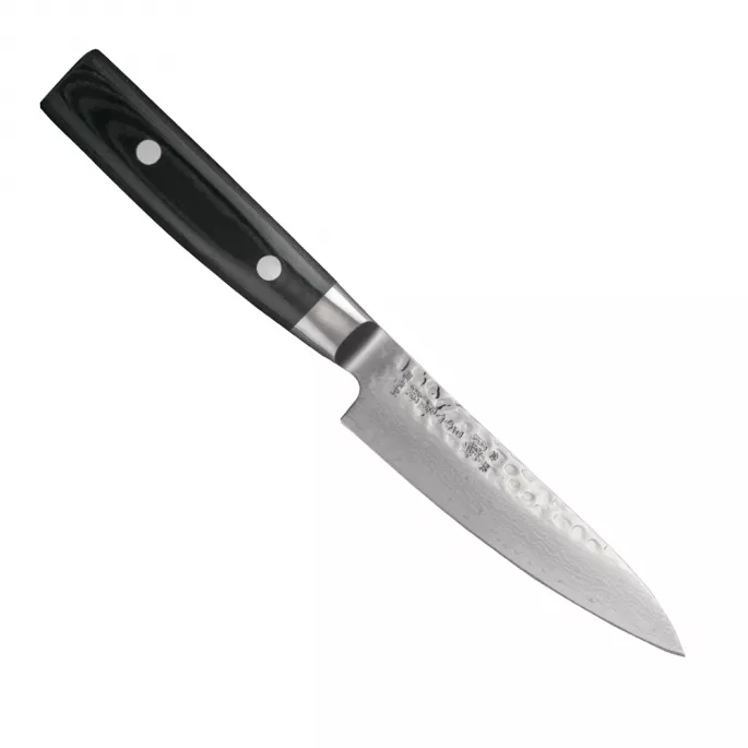 Японский кухонный нож серии ZEN с лезвием из дамасской стали 12 см подходит для ежедневного использования на профессиональной или домашней кухне, поскольку выдерживает любую рабочую нагрузку. В основе высококачественная сталь VG10 (кобальт, молибден, ванадий), покрытая защитными обкладками из 36 слоев нержавеющей стали с эффектным дамасским узором на лезвии.