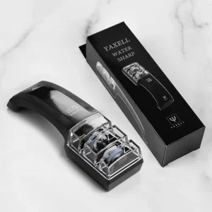 - Електроточилка: забезпечує швидке заточення за допомогою електроприводу, може мати кілька стадій заточення – грубу, середню та фінішну. Гарантує миттєвий результат, не вимагає особливих навичок, проте не підходить для ножів з тонкою кромкою.